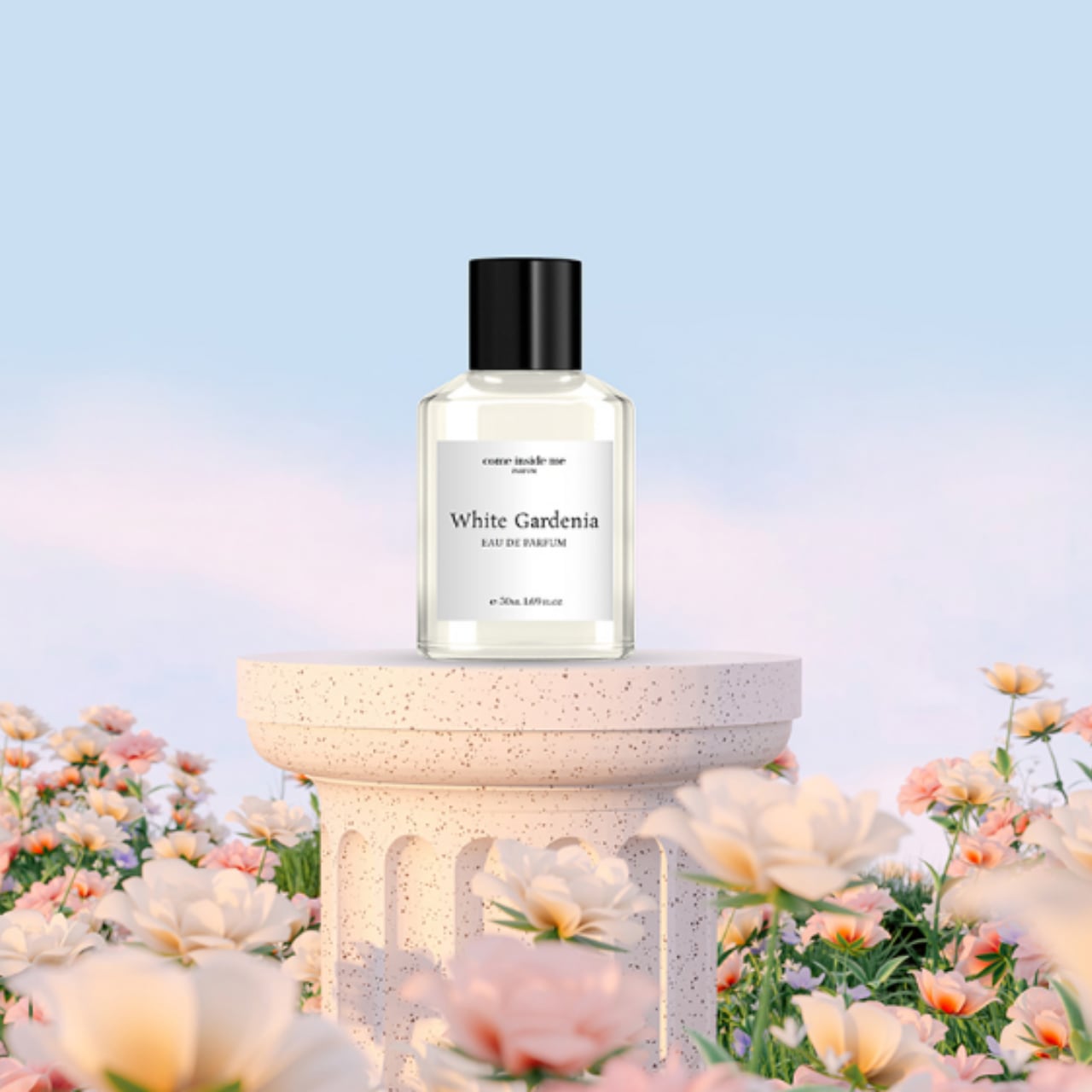 ガーデニアとローズの清潔でほのかな香りが、太陽の輝く池のほどりからそよ風に運ばれただよう花びらの香り。