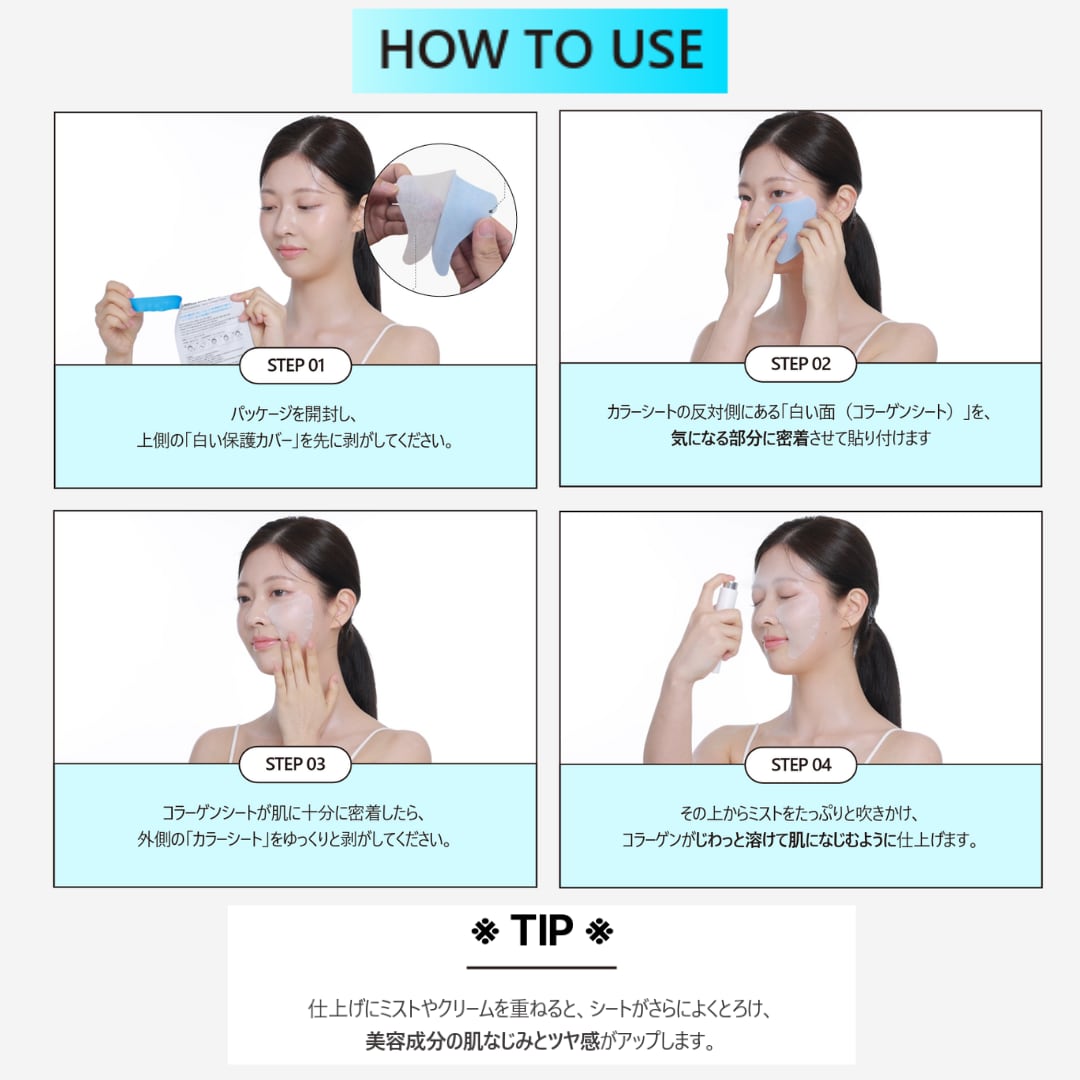 3秒チャージ・ナノコラーゲンシートで、手軽に美しさを手に入れましょう!肌のハリと潤いを取り戻し、自分自身に自信を持って外出できる日々をお楽しみください!